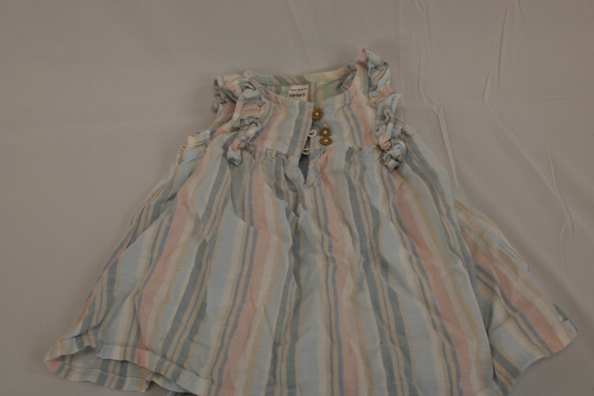 Carter's multi-color striped sleeveless dress, 2 button w/ matching bloomers, 6M