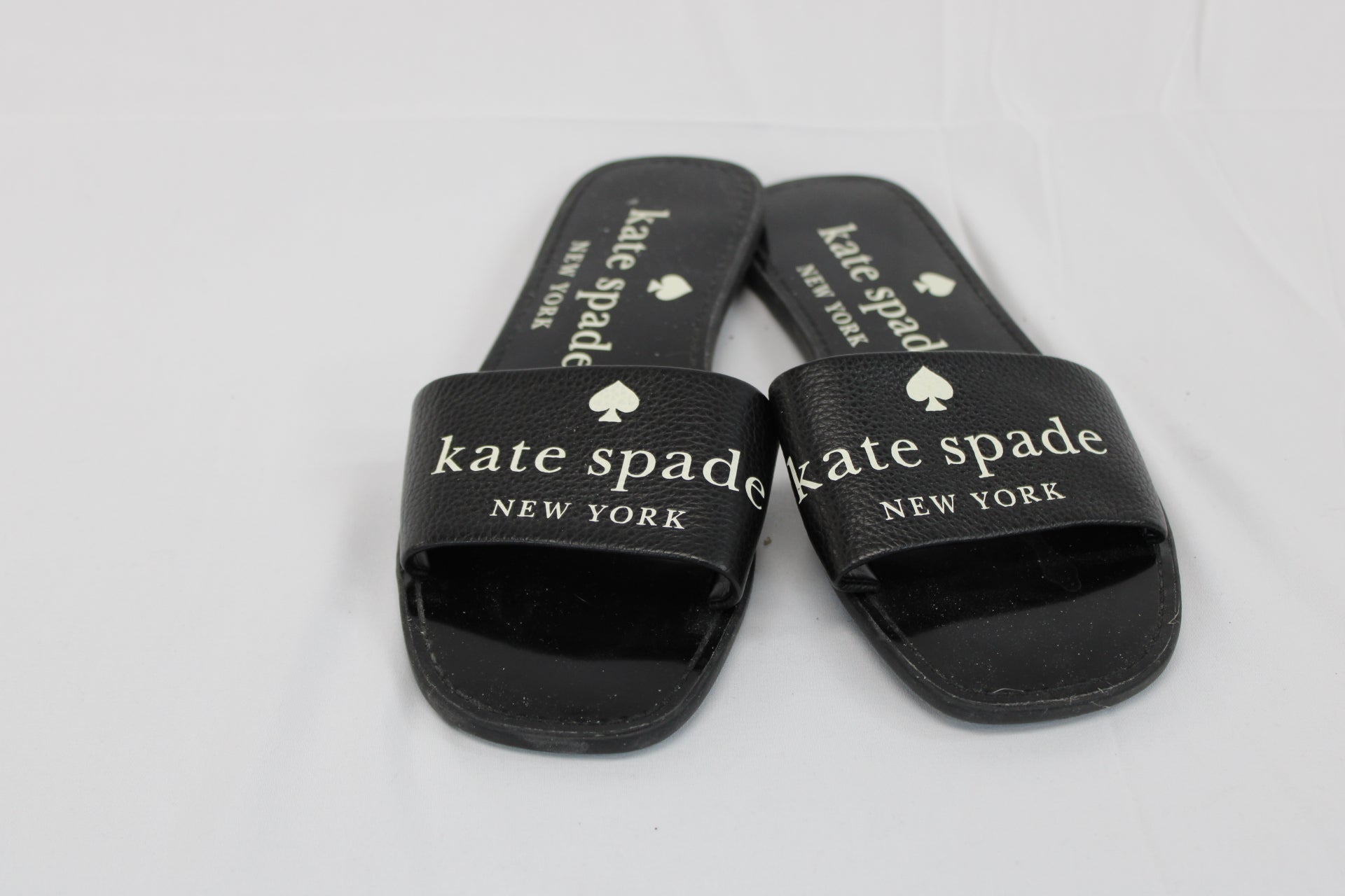 Kate Spade leather slide sandals, black patent, Women's 9