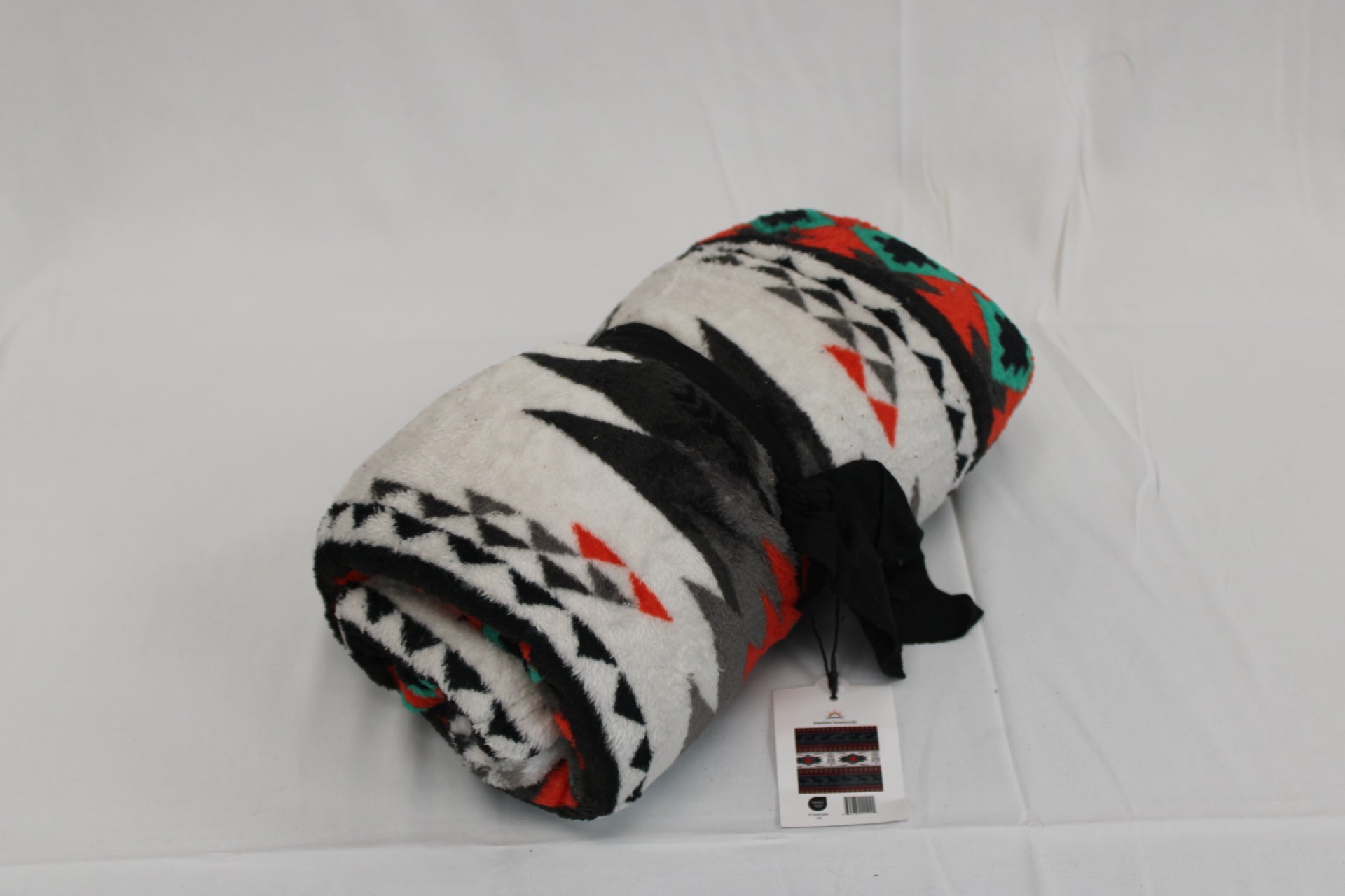Tribal patterned fleece throw blanket, blk/red