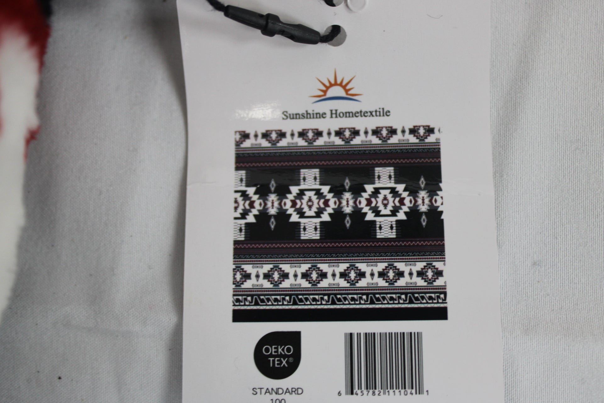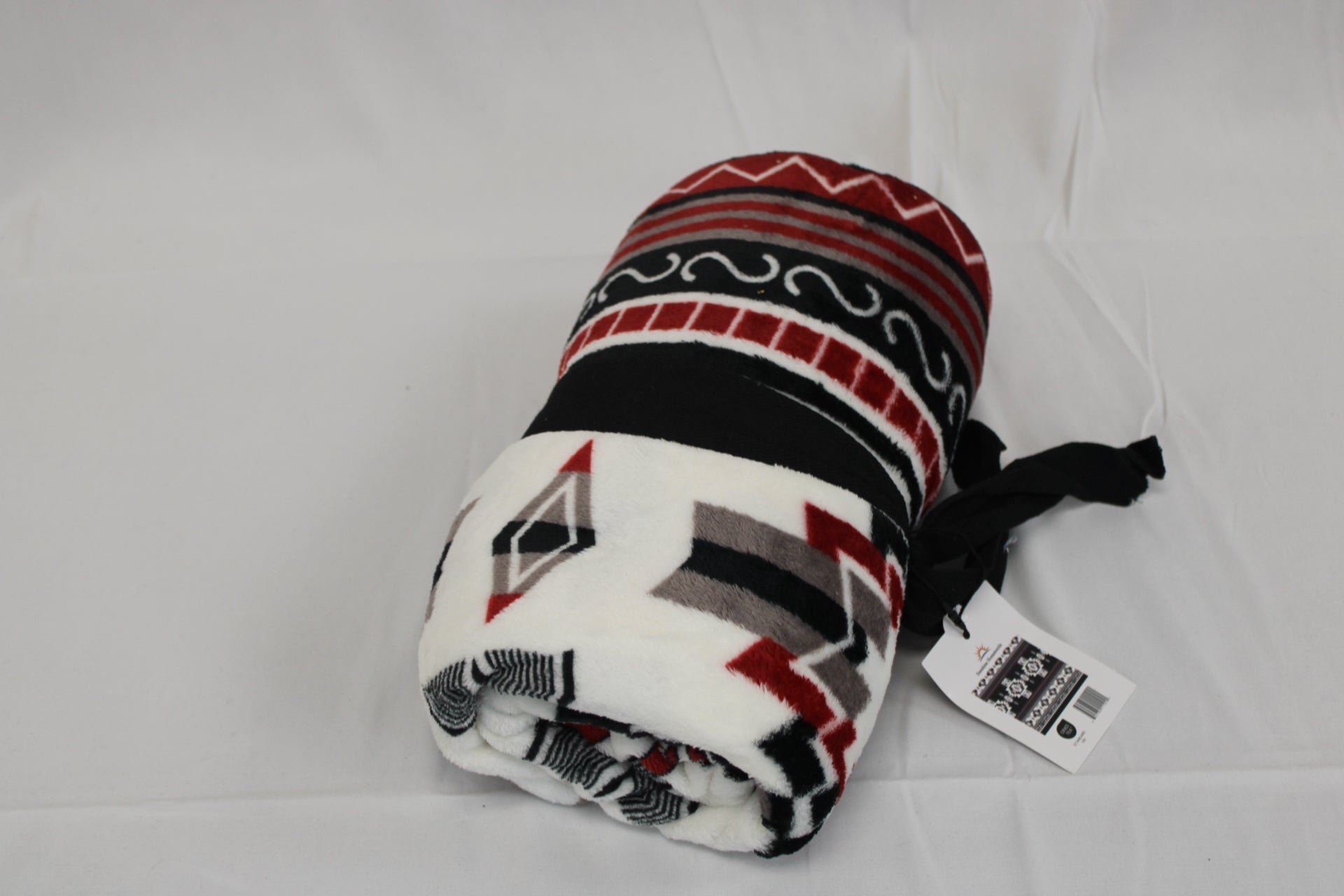 Tribal patterned fleece throw blanket, white/red